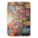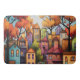 Eine Szene aus niedlichen Häusern inmitten eines Laub-Tapeten, in Orange, Blau und Bronze-Farbtönen. Die terrassenförmig angelegte Stadtmauer ist mit einem Hauch von Charme versehen, jedes Gebäude ist mit seinem ganz eigenen Charakter geschmückt.