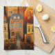 Farbige Häuser und Bäume im Herbst Geschirrtuch