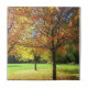 Ein heller und sonniger Herbstmorgen mit lebhaften bunten Herbstbäumen. Spaziergang im Wasserbehandlungspark in Wilsonville, Oregon.