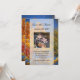 Foto Save the Date 2-seitige Verlobung Ankündigung. Herbstbäume mit Blätter in Orange, Gelb und Grün an einem blauen Himmel bilden den Rahmen für Ihre Herbsthochzeit. Schönes landschaftliches Landschaftsbild, um die Gäste an Herbsthochzeiten oder Hochzeiten im Freien zu erinnern. Alle Designs Copyright © www.CustomInvitesOnline.com