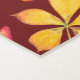 Die schöne Jahreszeit-Muster zeigt eine Vielzahl von Herbstblättern realistische Aussehen Aquarellbilder in goldenen Gelb, Orange und Rot, auf dunkelrotem Hintergrund.