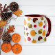 Diese Tasse ist mit einem bunten Herbsterntempo mit Kürbissen, Cranberries, Eicheln und Kastanien auf weißem Hintergrund gestaltet. Großartiges Geschenk für Herbst und Erntedank!