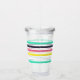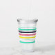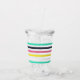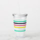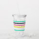 Eine farbenfrohe Dose kühler mit gestreiften Mustern. Die Tasse ist durchsichtig mit horizontalen Streifen in Rosa, Gelb, Türkis und Schwarz. Es ist für Ihr Lieblingsgetränk konzipiert.