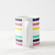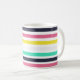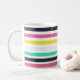 Eine farbenfrohe Dose kühler mit gestreiften Mustern. Die weiße Tasse hat eine schwarze, rosa, gelbe und türkisfarbene Streifen. Es wurde für eine normale Getränkedose entwickelt.