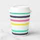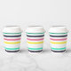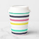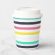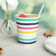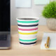 Eine farbenfrohe Dose kühler mit gestreiften Mustern. Cooler ist vor allem weiß mit horizontalen Streifen in Marineblau, Rosa, Gelb, Türkis und Marineblau. Es wurde für eine normale Getränkedose entwickelt.