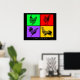 Kaufen Sie dieses Poster von Hühnern in den Farben Grün, Rot, lila und Gelb.