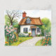 Farbige Hütte Wasserfarbe Blühende Blume Postkarte