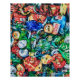 Eine lebendige und farbenfrohe abstrakte Abbildung, die eine chaotische Collage aus gemahlenen Aluminiumdosen darstellt. Das Kunstwerk hebt das recycle- und Umweltbewusstsein durch lebendige Farbtöne und dynamische Komposition hervor.