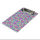 Farbige Klemmbrett mit einem lebendigen, symmetrischen Muster in lila, blauen und grünen Farbtönen mit floralen Motiven. Das Design ist kompliziert und energiegeladen.