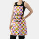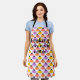 Diese Schürze für Erwachsene hat ein Design von Gebäuden verstreut über das Design in Gelb, Orange, Rosa und lila auf einem Feld von Weiß. Behalt den Text und/oder den Schriftart, ändere ihn oder lösche ihn ganz.