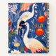 Ein lebendiges, farbenfroh gestaltetes Set aus Kranen und Blume auf blauem Hintergrund, das auf beiden Seiten des Notizbuches zu sehen ist und ein schönes Geschenk machen würde.