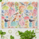 farbenfrohe Vögel und Blume, künstlerische Aquarellmalerei, blühendes Blumenvogelmuster, moderne zeitgenössische Farbprägung, bunte, farbenfrohe Blume, hübsche, niedliche, mädchenhafte, hübsche Gartentiere, Naturtierkunst, rosa Minze, blauer Regenbogen