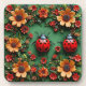 Farbenfrohe Ladybugs, die auf einer grünen Blumenoberfläche sitzen
