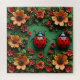 Farbenfrohe Ladybugs, die auf einer grünen Blumenoberfläche sitzen