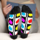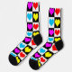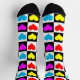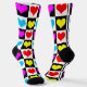 Kreative, geometrisch rote, blaue und lila Liebe Herzformen geprüft auf Schwarz-Weiß-Blockdruckoberflächen Design.