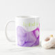 Lila Tintenmuster auf weißem Hintergrund mit individuelle Name in Kalkgrün. Einfach zu personalisieren Text, Textfarbe. Gutes Geschenk für Kunstliebhaber, Familie, Freunde, Zuhause, Büro, Schule. Modern, farbenfroh, Spaß. Mix und Match komplette Fun Tasse Kollektion von TMCdesigns.