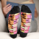 Quirky Socken mit Stapeln von farbenfrohen Macarons.