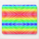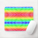 Farbige Mauspad mit einem hellen, symmetrischen Muster aus diagonalen Regenbogenstreifen und geometrischen Formen, das eine lebendige und spielerische Stimmung hervorruft.