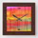 Farbige moderne Holzkörner Burlap-Grenze #7 Quadratische Wanduhr