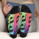 Farbige Crew Socken mit schwarzen Musiknoten. Eine tolle Geschenkidee für jemanden, der im Musikbereich ist.
