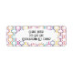 Diese Rücksendeadressen-Aufkleber haben ein Deko-Design von orange, türkis, rosa, blau, lila und gelb Halbkreise mit Linien auf einem Feld von Weiß verbunden.