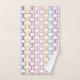 Dieses Set ist in einem Deko mit orangefarbenen, türkisfarbenen, rosa, blauen, lila und gelben Halbkreisen gestaltet und verbindet die Linien auf einem weißen Feld.
