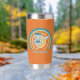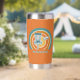 Farbige orangefarbene Retro Disk Golf Thermobecher