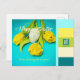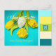 Farbenfrohe Streifen in frischen, fröhlichen, lebhaften Farben mit einem Monogramm und einem Ostereier aus gelben Tulpen und einem Ostereier mit Kalligraphieskript Happy Oaster und niedlicher kurzer Nachricht. Dunkle und helle Blues mit heller Creme, Grün und Gelb. Helles Design. Vollständig anpassbares Monogramm und Foto. Personalisieren Sie diese, indem Sie den Text, die Initialen und den Namen ändern oder durch Ihr eigenes Logo und Foto ersetzen. Herzlichen Glückwunsch zu Ostern!