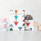 Dieses Verpackungspapier hat ein modernes Design von Pfeilen aus schwarzen Linien und verschiedenen Formen in Retrofarben Rot, Blau, Grün, Orange, Gold und Grau auf einem Feld von Weiß. Woll das gleiche Design mit verschiedenen Farben? Nachricht.
