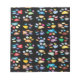 Farbige Pfotendrucke auf schwarzem Hintergrund.