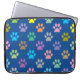 Farbenfrohe Puppy-Pfoten drucken Muster auf blauem Hintergrund Laptop-Ärmel