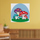 Eine Gruppe von drei Pilzen in lebhaften Farben. Dieses Design sieht wirklich effektiv aus auf diesem Poster