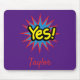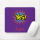 Dieses auffallende und farbenfrohe Pop-Kunstmauspad verfügt über einen grafischen Text mit "Ja" auf einem lila Hintergrund. Das Beste daran ist, dass Ihr Name unten in rot kursiver Schriftart geschrieben ist. Bestelle noch heute! Clipart: AnneIllustration https://www.etsy.com/shop/AnneIllustration