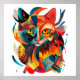 Eine Katze, die in geometrischen Formen und vibrierenden Farben illustriert ist, die fröhliche Energie liefern. Dieses Kunststück ist perfekt für Katzen- und moderne Designer. 🐱