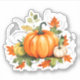 Ein Niedlicher Herbstaufkleber mit Kürbis und bunten Herbstblättern.