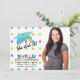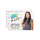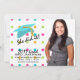 Farbenfrohe, moderne, kundenspezifische Foto Abschluss Ankündigung getan in bunten Polka Punkte und Grafiken eines Aqua-Blue Graduiertenkappen. Fügen Sie Ihr eigenes Foto hinzu und personalisieren Sie den schwarzen Text auf den Anzug, den Ihr Abschluss benötigt. Toll auch als Abschlussfeier Einladung.