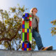 Ein buntes, hartes, geometrisches abstraktes Design, das vielleicht ein wenig an Mondrain erinnert, wenn auch anders. Ein hochauflösendes Design, das aus einem Vector Grafikoriginal erstellt wurde.