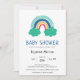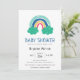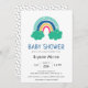 Niedlicher illustrierter Regenbogen, Babydusche Einladung. Vorlage ermöglicht die Anpassung aller Texte. Auf der Rückseite der Karte wird das schwarz-weiße Doodle-Muster koordiniert.