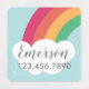Ein skurriles, kindereisernes Etikett mit einem schwindelerregenden Regenbogen mit weißer, flauschiger Wolke und kalligrafischem Namen und Kindertelefonnummer darunter. Fügen Sie diese zu den verschiedenen Schulstücken hinzu, um die Kennzeichnung mit Persönlichkeit und Flair zu erleichtern. Ideal für harte und weiche Produkte wie Lunchboxen, Wasserflaschen, Büchertaschen, Decken, Uniformen, Shirts, Jacken, Handtücher und andere persönliche Gegenstände. Achten Sie darauf, dass Stacey Meacham Zubehör und weitere Farbvariationen koordiniert.