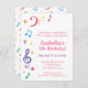 Farbige Regenbogenmusik Geburtstagsparty Einladung