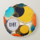 Dieses einzigartige Design zeichnet sich durch helle, mehrfarbige Kreise aus, die von gepunkteten Kreisen umgeben sind, und überlagert durch abstrakte Goldformen, die dem Gesamtbild eine Touch von Funkeln und Launen verleihen. Mit diesem Retro, farbenfrohen geometrischen Design fügt sich ein wenig Spaß in jeden Raum ein. Dieses lustige Kissen bietet eine Personalisierungsoption für Ihre Initialen, die sich auf einen abstrakten Kreis im abstrakten Design konzentrieren. Dieses Element gibt auch eine fette Designanweisung in Ihrem zurückgeschobenen Raum ab.