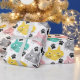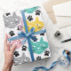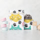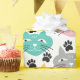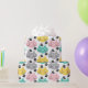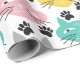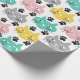 Ein lustiges Retro und farbenfrohe Umschlagpapier mit verschiedenen farbigen Katzengesichtern und schwarzen Paws