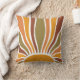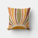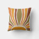 Ein farbenfroher Retro Vintager Sonnenaufgang werfen Kissen. Groovy 70er Jahre Stil in Oliven-Grüntöne, Orange und Terracotta.