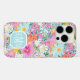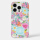 Passen Sie diesen wunderschönen modernen farbenfrohen Blumengarten aus rosa, blauen, orangen, gelben und weißen Blumen iPhone 16 Pro Case mit Ihren Initialen in einer modernen CAP-Schrift in weiß auf blau an. Es ist so lebendig und fröhlich!
