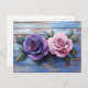 Farbige Rose im rustikalen Holzhintergrund Postkarte