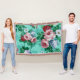 Farbenfrohe Rose und Blume. Rosa und rote Rosen, hellblau-grüner Hintergrund mit weißen und blauen Akzenten.