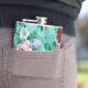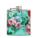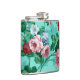 Farbenfrohe Rose und Blume. Rosa und rote Rosen, hellblau-grüner Hintergrund mit weißen und blauen Akzenten.