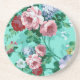 Farbenfrohe Rose und Blume. Rosa und rote Rosen, hellblau-grüner Hintergrund mit weißen und blauen Akzenten.