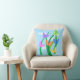 Kopfkissen mit meinem Design von sechs Schmetterlingen in lila, grün, blau, orange, rosa und gelb auf Grasblättern unter einem blauen Himmel mit puffigen weißen Wolken.