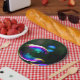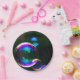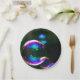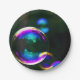 Farbenfrohe Seifenblasen schweben. Reflektion in Blase ist ein Wald. frontiernow.com